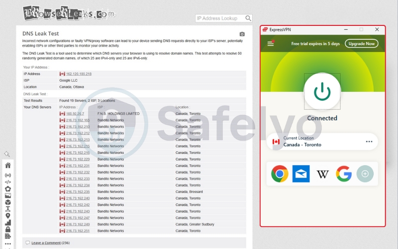 - DNS Leaks: Passed. The VPN forces your device to use ExpressVPN’s own private, encrypted DNS servers. My Internet Service Provider (ISP) had no idea what websites I was visiting.